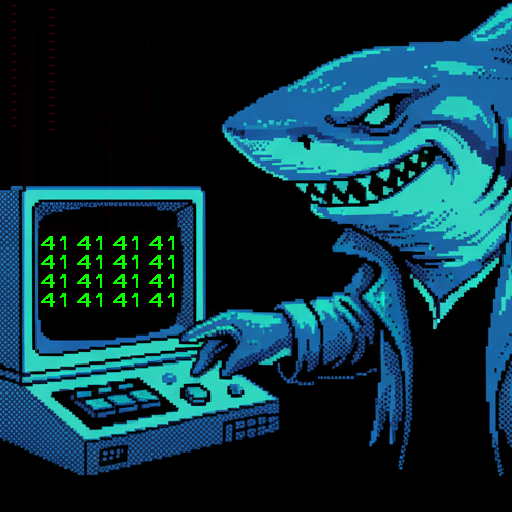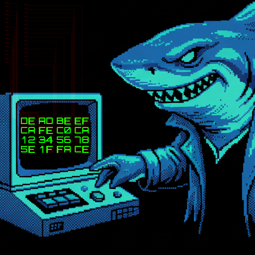 Before we do the final “render”, let’s give the image some extra flare. We can inject some nice graphics into the rest of the residual pixels. I chose a cyber shark because why not…